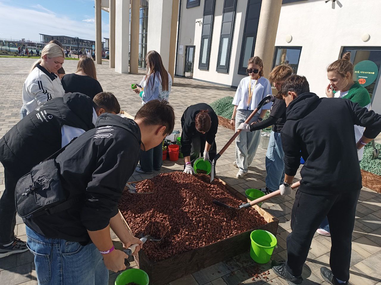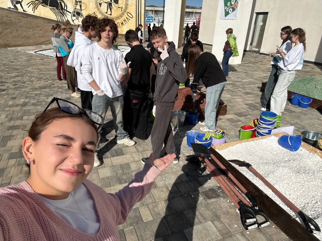 Как вы думаете, что делают наши ученики? Они создают панно на Зелёном Фестивале!