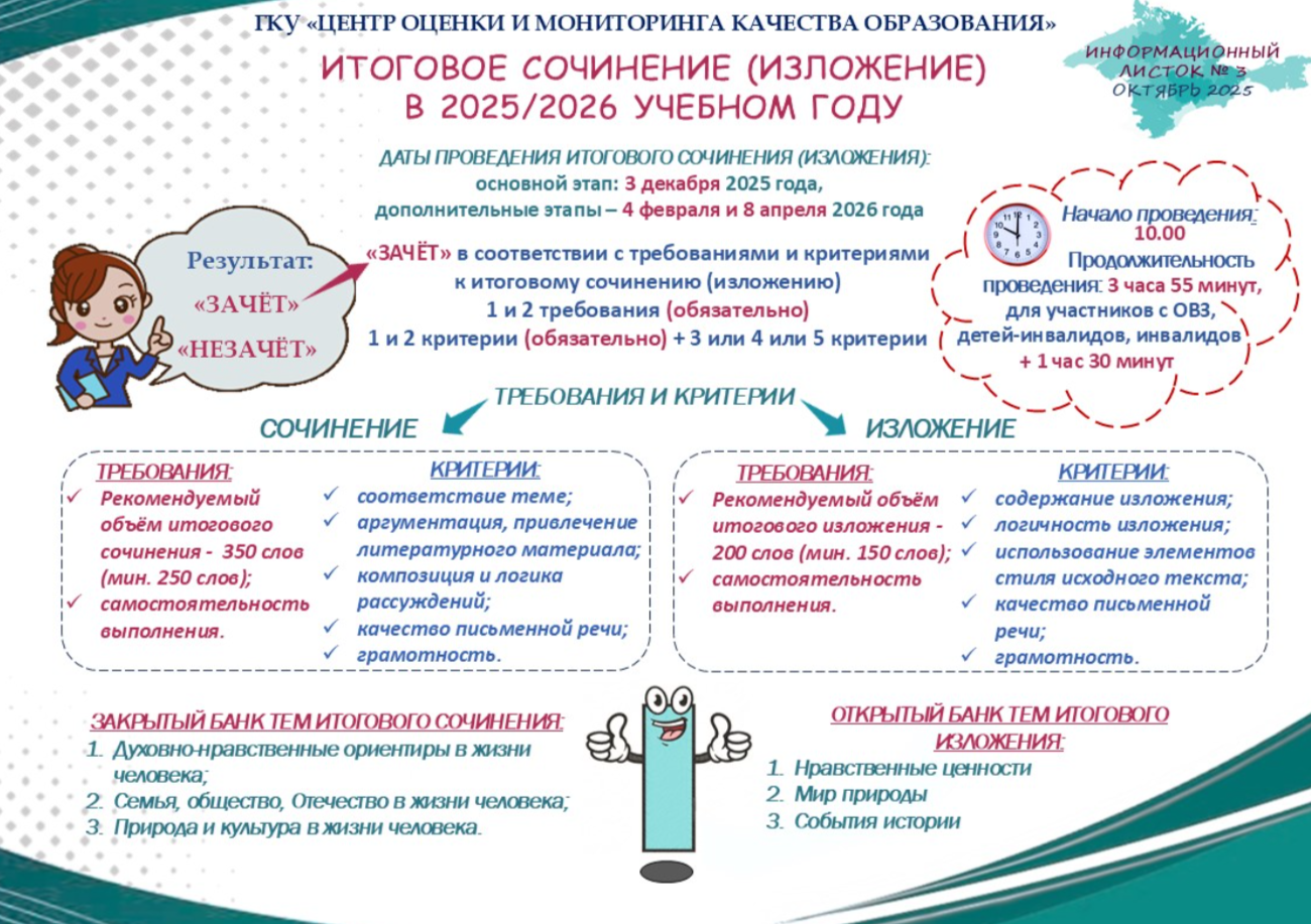 Итоговое сочинение пройдет 6 декабря 2023 – основной срок. Дополнительные сроки для выпускников, которые не сдали в основной, – 7 февраля и 10 апреля.
